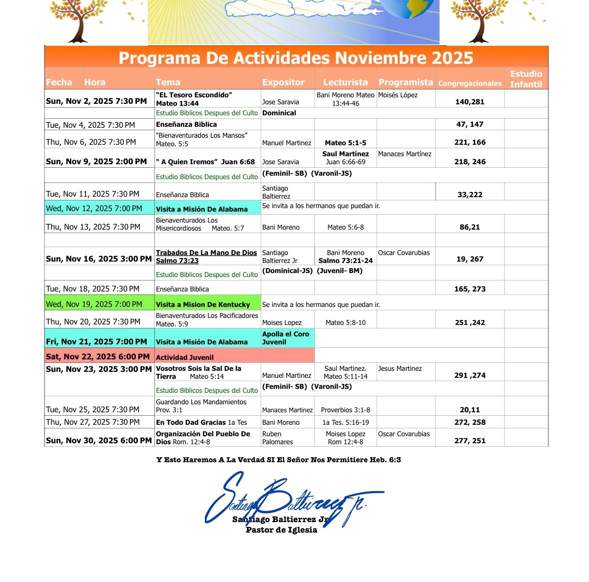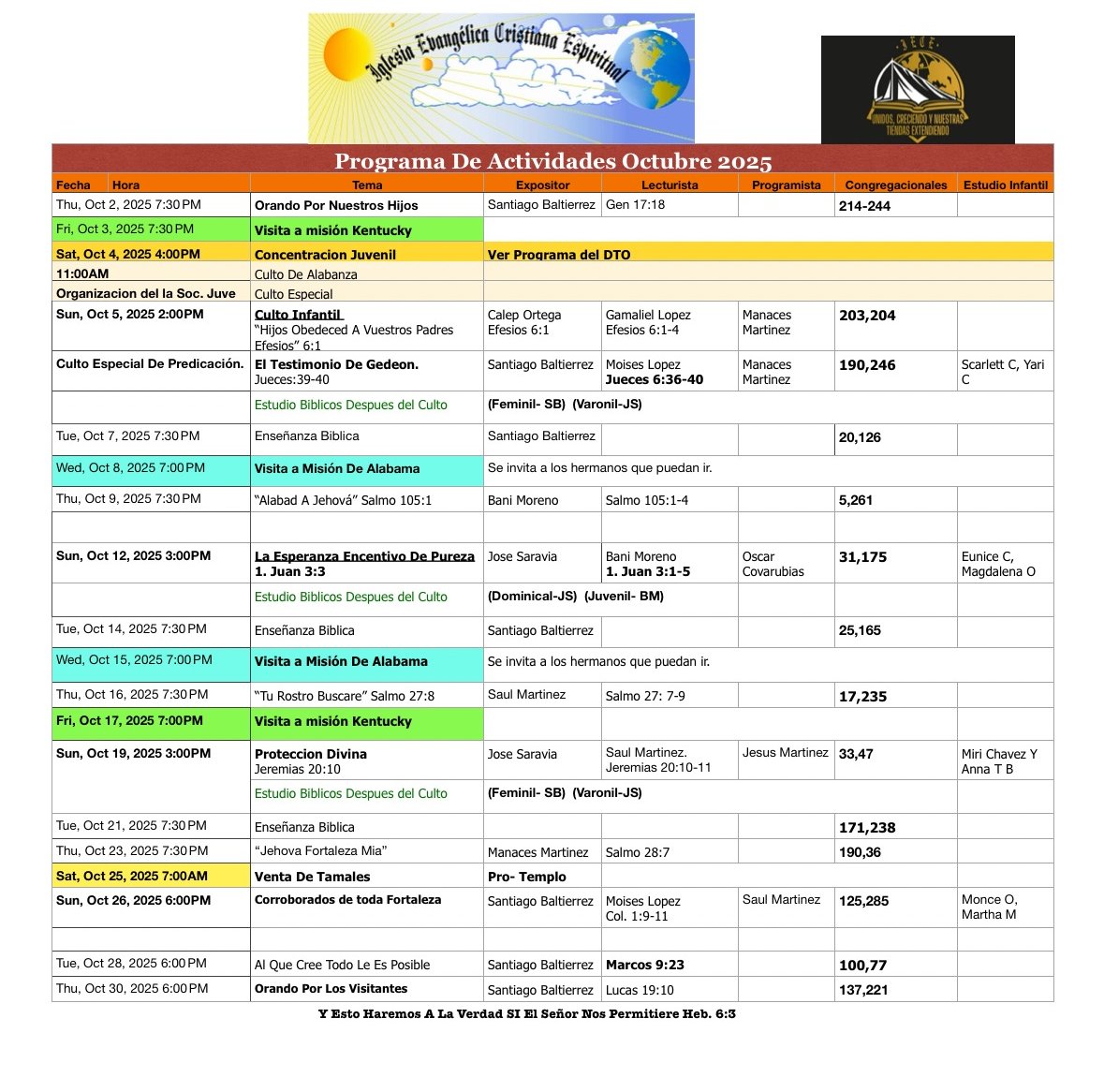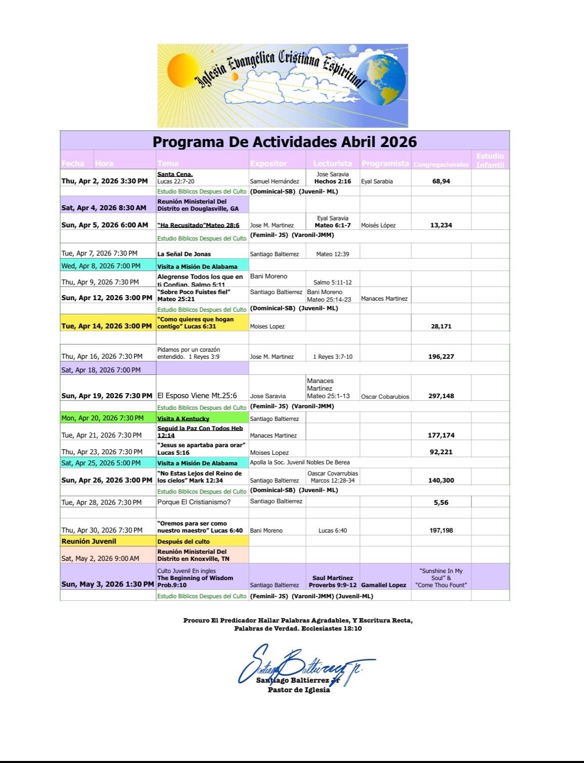 Venga a visitarnos en Iglesia Evangélica Cristiana Espiritual de Murfreesboro para formar parta de las actividades mensuales. Todos son Bienvenidos.